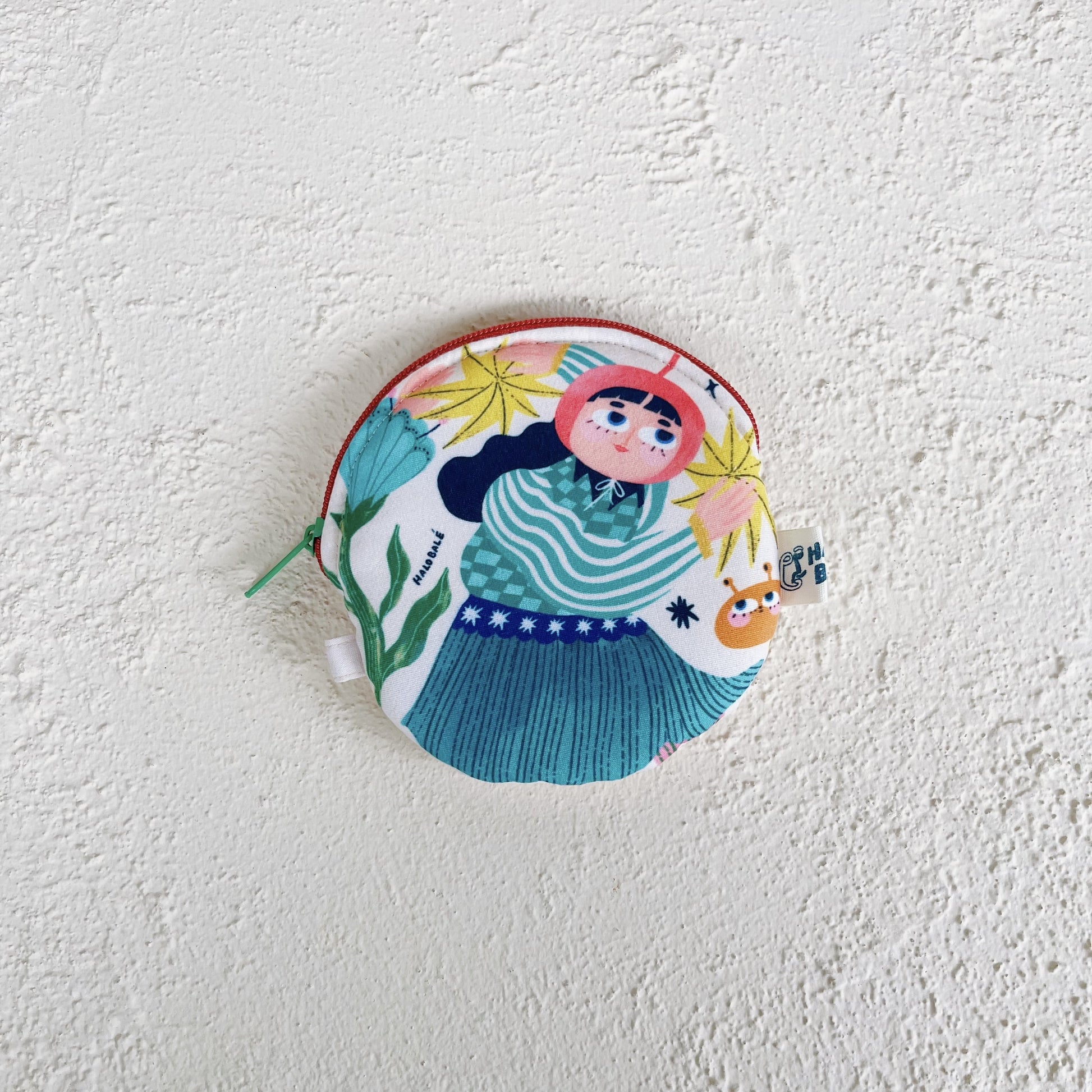 Halobale two sided full illustrated pouch with full colour inner and a zipper with strap.